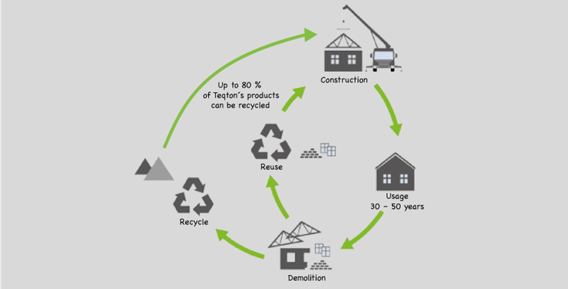 In Teqton, sustainability is a significant part of our business foundation. Our products ensure that materials are produced with a strong focus on sustainability. Both in the manufacturing process and after the product's lifespan, there are significant recycling possibilities.