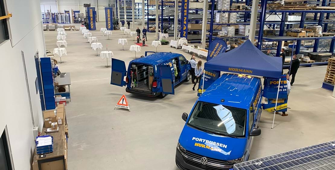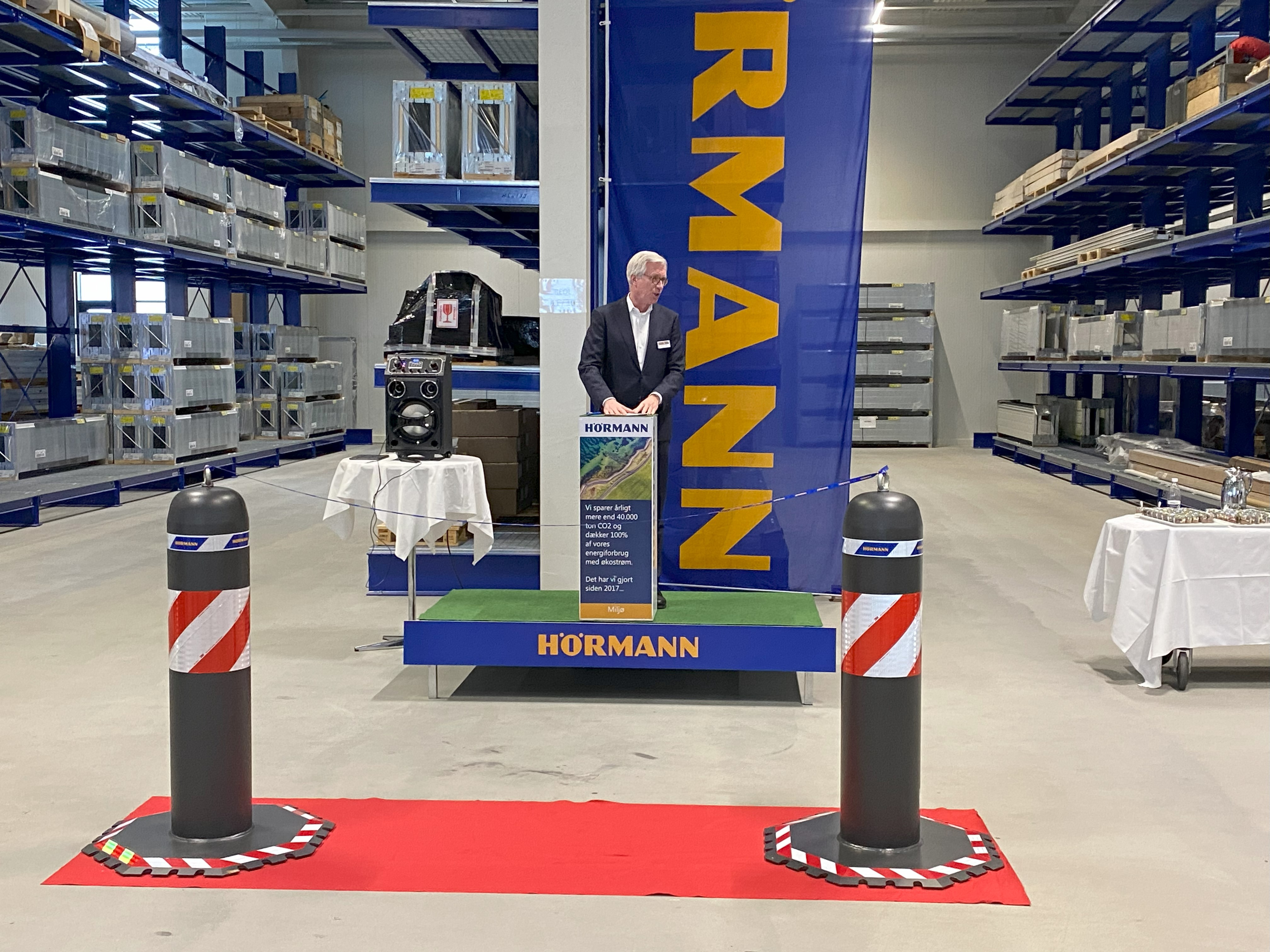 Selvom coronapandamien forsinkede byggeprojektet, møder glade medarbejdere i dag ind i deres helt nye domicil i Hörmann-farver. Valget om at flytte den danske afdeling fra Hornbæk til Randers blev truffet, fordi Randers Kommune tilbød en attraktiv byggegrund til en god pris.