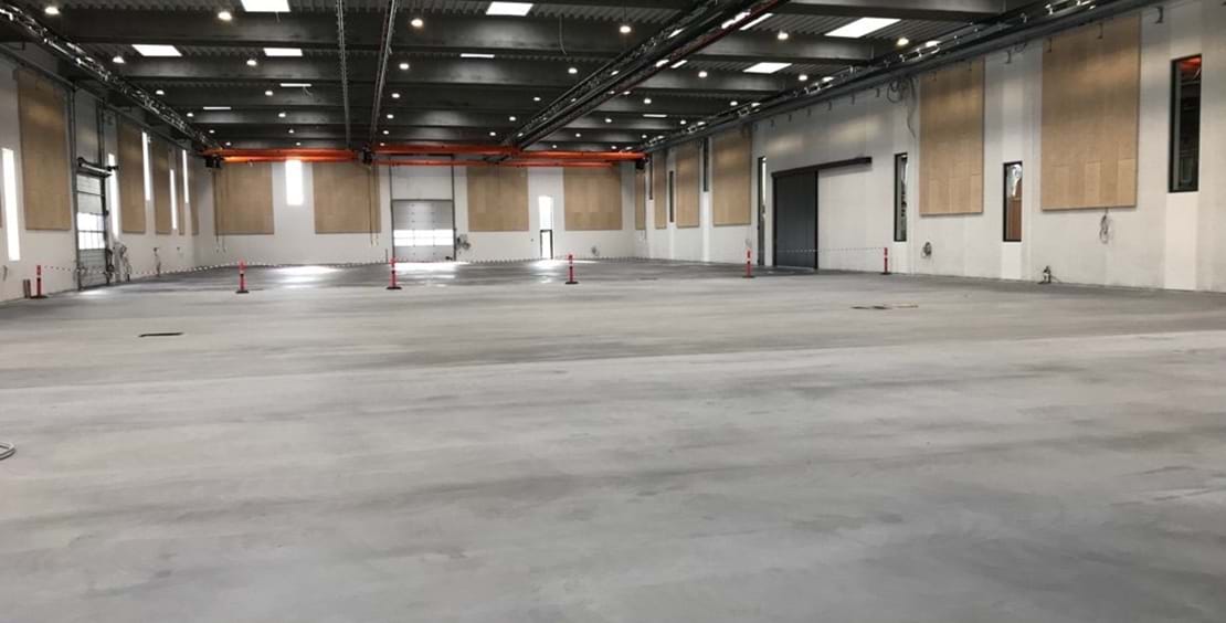 Da taget var lagt og bygningen tæt kunne Teqton levere et polymerforstærket slidlag af typen Teqplan, der ud over sin meget høje slidstyrke også er smudsafvisende og rengøringsvenligt.