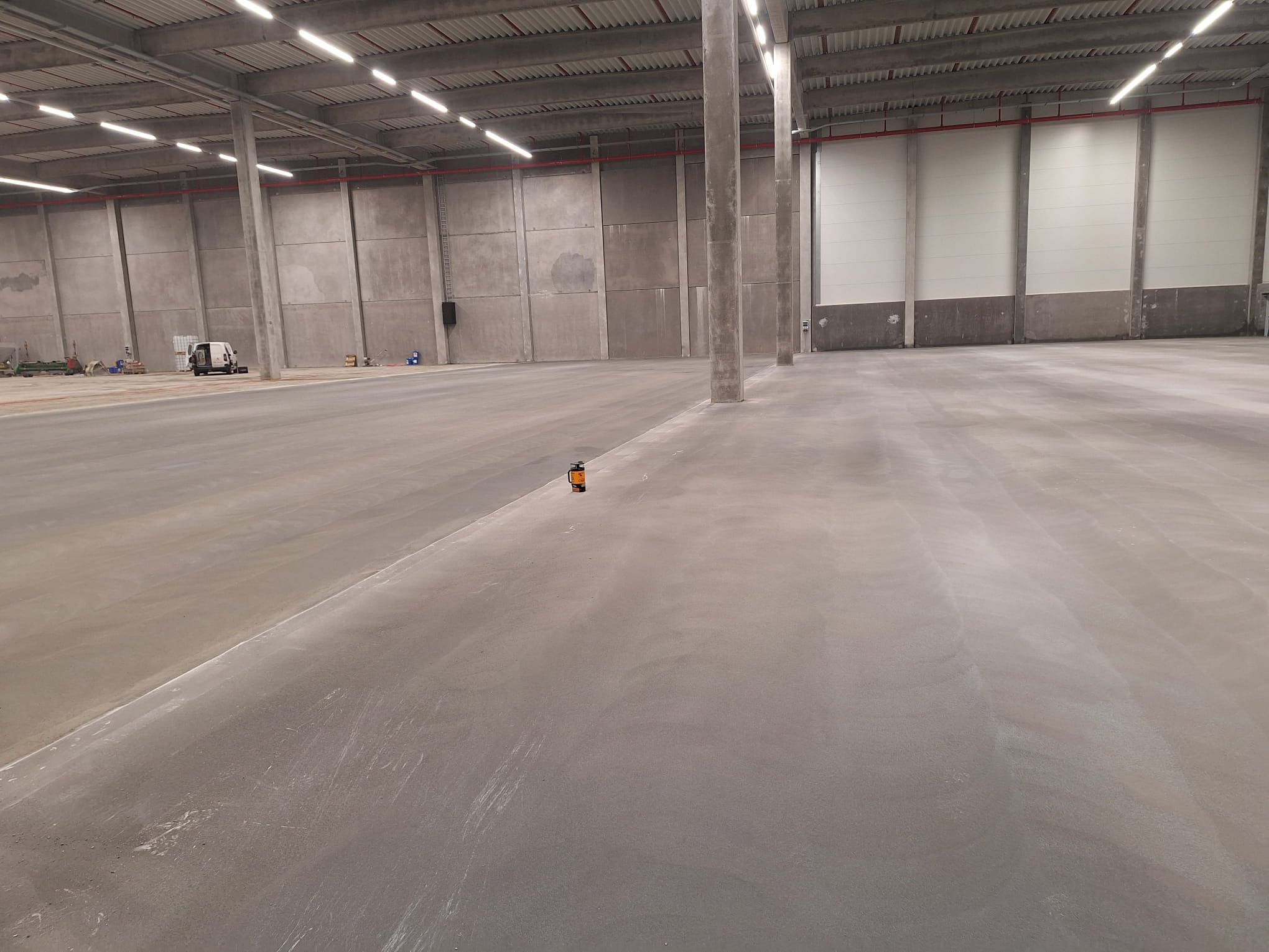 Der er udført 8.900 m² fugefrit Teqplan slidlag med forhøjet planhed i henhold til DIN 15185. Løsningen skaber en præcis, ensartet og stabil overflade, som matcher kravene til VNA smalgangslager og moderne logistikmiljøer.