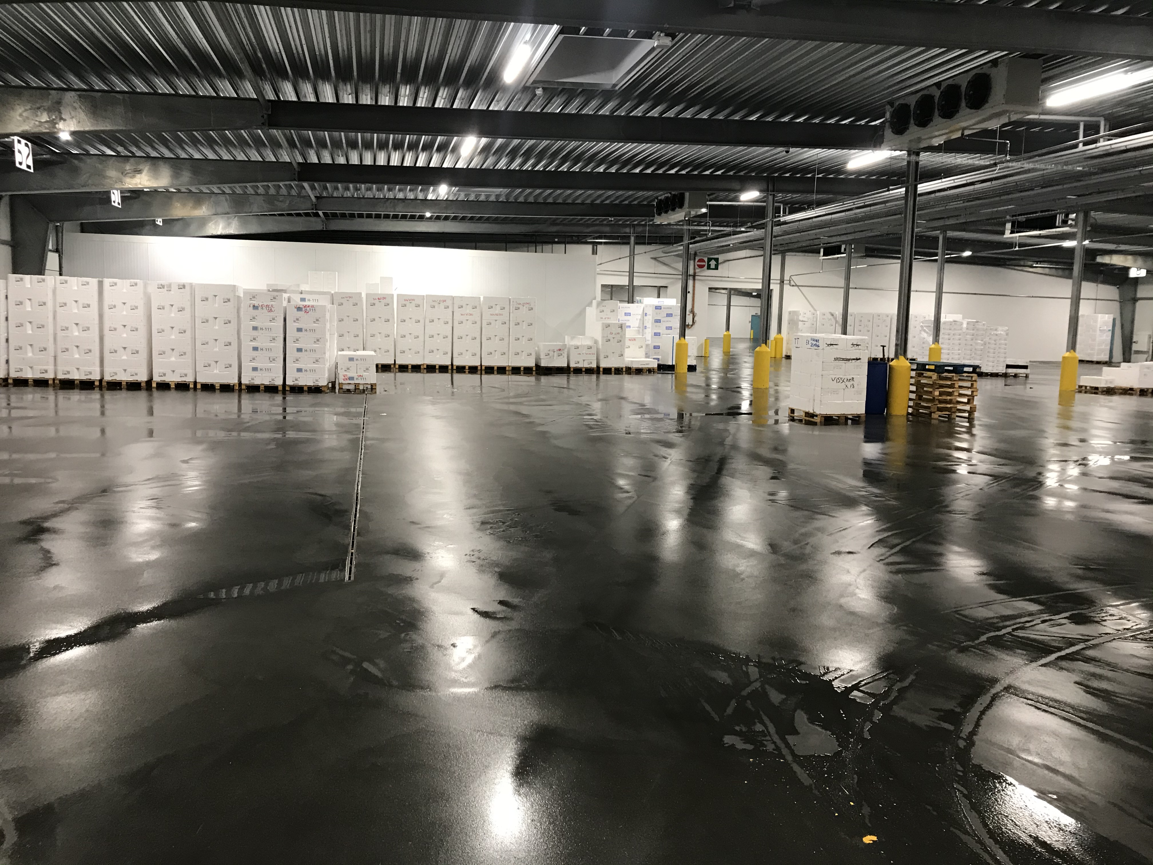 Dette sikrer hurtig og effektiv trafik på gulvene, der giver godt vejgreb til truck og personel, selv om gulvene er våde fra is til køling og hyppig rengøring for hygiejne.