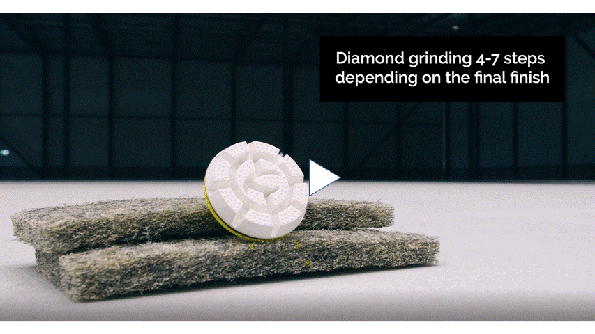 Se vår video nedan eller på Youtube här: Grinding Teqton jointfree floors to a perfect shine