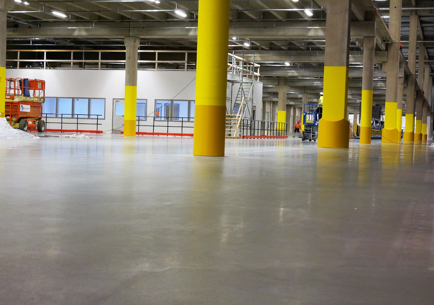 Teqplan slitlagret har sedan vattenglasimpregnerats och diamantslipats i fyra steg för en tät och lättstädad yta.