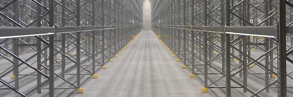 En av BILTEMA´s tre enorma logistikbyggnader med golvlösning med Teqbase-systemet.