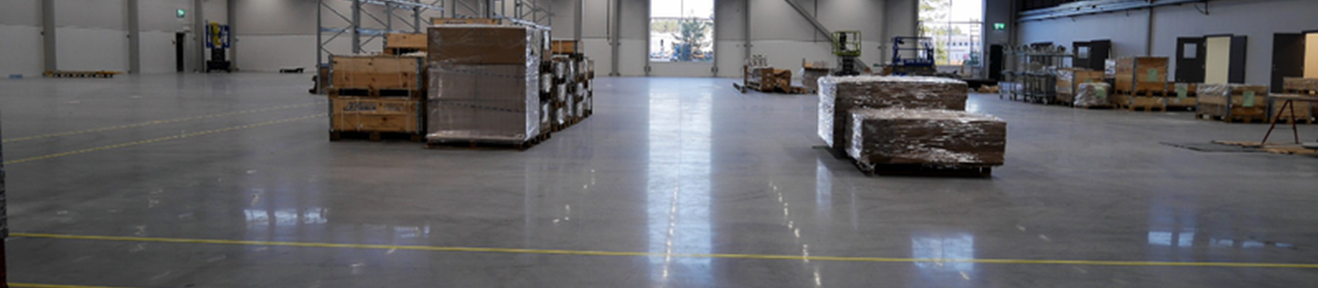 Teqplan slitlagret har sedan vattenglasimpregnerats och diamantslipats i fyra steg för en tät och lättstädad yta.