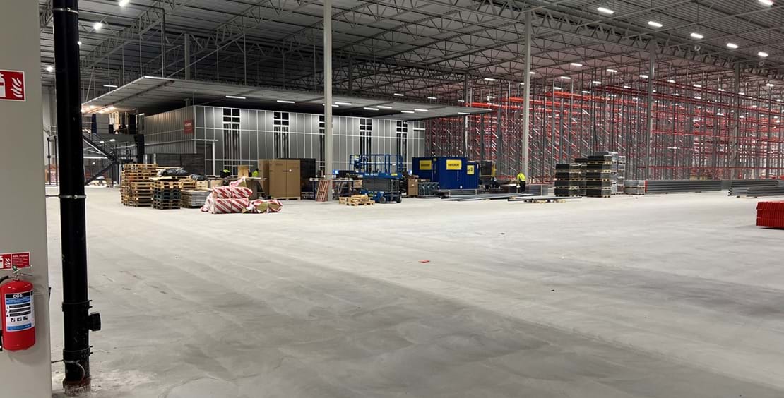 Teqton har levererat fogfria golv till ett nybyggt lager i Eskilstuna.