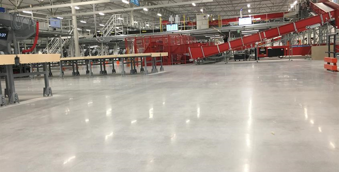 Teqplan slitlagret har sedan vattenglas-impregnerats och diamantslipats i sju steg för en tät och glansig yta.