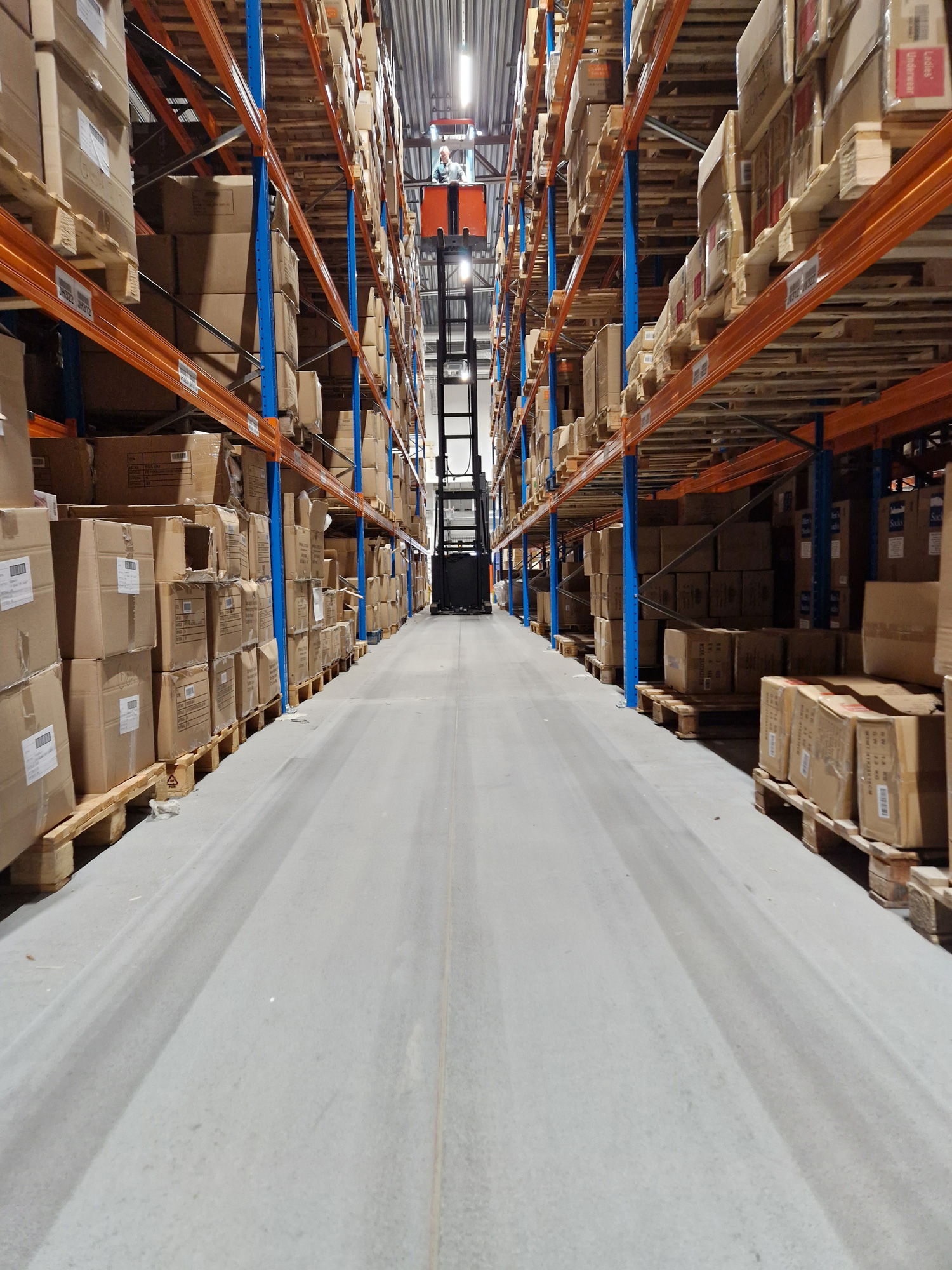 I genomsnitt 3000 st. burar med varor körs dygnet runt och detta händer på deras nya Teqton-våningar.
