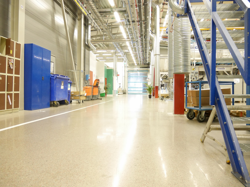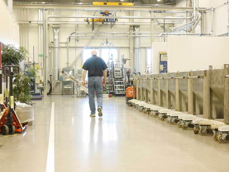 Nybyggnad av pulverfabrik i Fagersta. Ca 7.000kvm Terrazzoplan som lagts i två etapper.