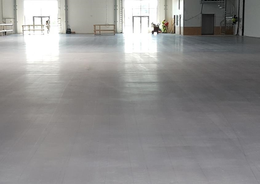 Teqplan slitlagret har sedan vattenglasimpregnerats och diamantslipats i fyra steg för en tät och lättstädad yta.